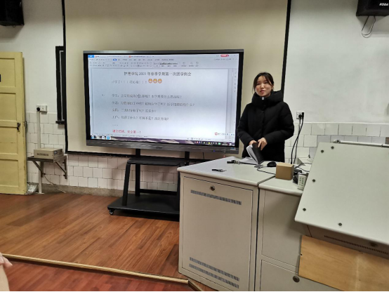 会议伊始,团委副书记杨琼代表团委学生会各部门汇报寒假的工作开展情况,总结了上一学期开展活动时各部门的收获及不足,并对三月即将展开的工作进行规划。