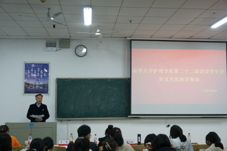 2021年4月7日晚,伟德国际victor1946在一教111教室举行第二十二届团委学生会干部复试竞选演讲。伟德国际victor19462019级、2020级共54名候选人参加竞选。伟德国际victor1946党委副书记彭建南、团委书记夏代会、辅导员夏艺萍以及第二十一届团委学生会干部出席活动。2019和2020级各班代表观看并参与投票,竞选演讲由198班王淞主持。