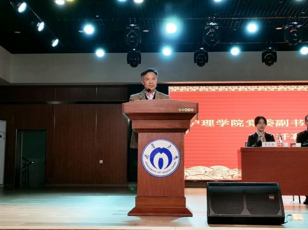 接着,校学生工作部副部长廖迎春致辞。她对伟德国际victor1946以及院团委学生会的工作表示高度肯定,希望新一届团委学生会能够做到“三个注重”:其一,注重思想引领,坚定理想信念,举办具有护理特色的相关活动,增强同学们爱党、爱国、爱校、爱院的使命感。其二,注重团队合作,要调动团队每一位同学的积极性,实现团委学生会“团结、务实、创新、高效”的八字目标。其三,注重主动调研,完善工作思路,热情服务同学,及时将同学们的诉求反馈给老师,不做学生官,争做学生友。