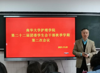 彭建南书记作总结发言。他充分肯定了大运会中学院取得的成绩,鼓励同学们继续加强体育锻炼,增强自身体魄。紧接着,他就2021年度“慈善一日捐”活动提出班委要提高执行力,把工作落实到位。针对学业预警问题,他提出要在学习和心理两方面对同学们进行帮扶,促进学风建设。最后,彭书记就11月工作提出以下注意事项:1、在疫情防控期间,大家要遵守学校的管理规定,做好自我防护措施;2、重视心理健康问题,不断加强同学们在学业、健康和心理三方面的团体辅导;3、注意校园安全如用电安全、交通安全;4、重视双选会,将就业信息精准地通知到位,促进就业工作的有序推进;5、加强智慧学工的应用以及注重学院活动的开展。