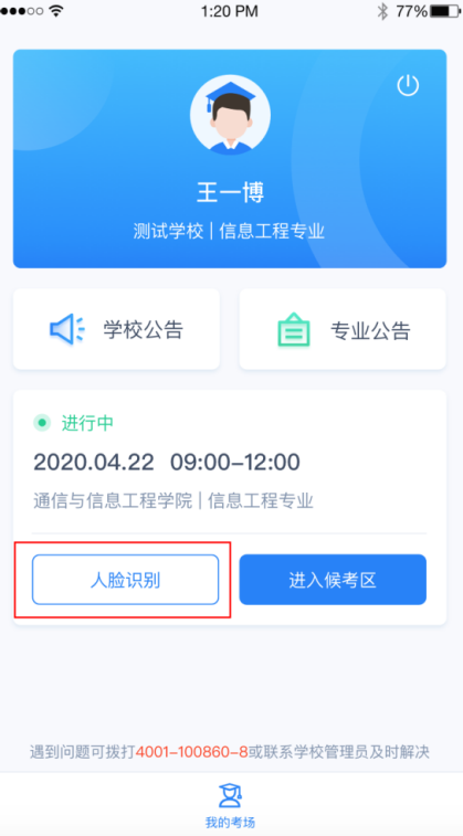 a. 查看考场的日期时间、考场名称等信息,若有疑问及时跟学校管理员取得联系