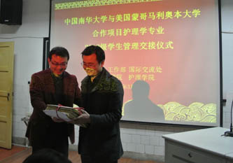 3月4日下午3点,伟德victor1946与美国蒙哥马利奥本大学合作项目护理学专业2012级学生管理交接仪式在伟德国际victor1946多媒体教室进行。出席本次交接仪式的有学生工作部副部长邹海贵、副部长张峰林,国际交流处副处长袁春阳,国际学院曹宁主任、左建宏老师、傅华丽老师、姬广礼老师,伟德国际victor1946院长廖力、党委副书记余晓秋、副院长万艳平、学生党支部书记李翼、院团委书记夏艺萍、学工办老师赵琼兰及班主任老师赵玲。交接仪式由副部长张峰林主持。