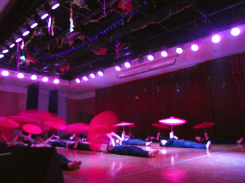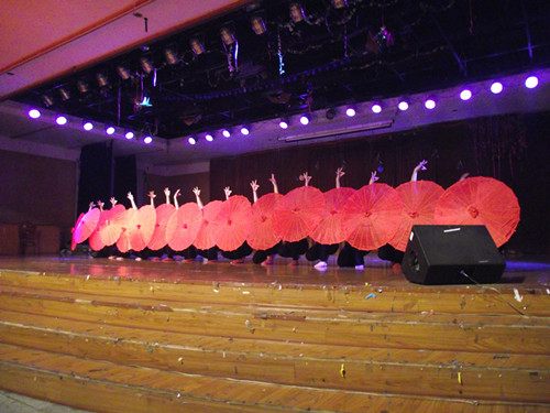 伴着清灵婉转的乐声,伟德国际victor1946的女生们如初醒的孔雀,在一片红艳艳的油纸伞中闪亮登场,一改往年一贯的平淡之风,鲜明的傣族风情在优美的舞姿中被展现得淋漓尽致。轻捏的素指一如孔雀之眼,灵动俏皮。旋转的身姿一如彩凤翩飞,光彩夺目。
