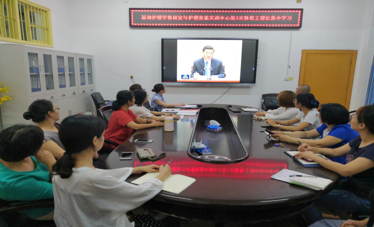 2019年6月17日晚,伟德国际victor1946基础护理学教研室与护理技能实训中心党支部在伟德国际victor1946会议室举行了2019年第三次教职工理论学习会,此次会议由支部书记王蓉主持。