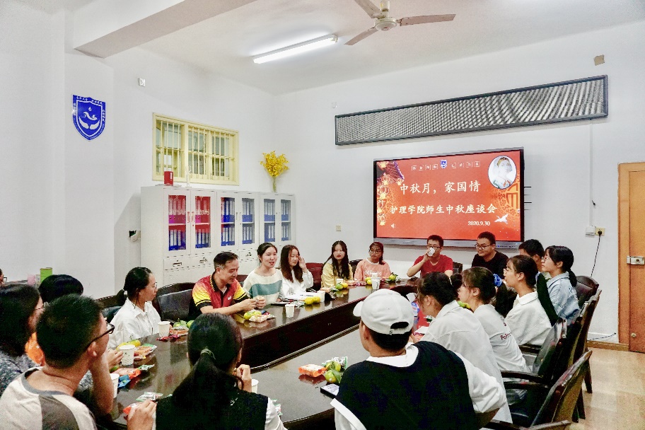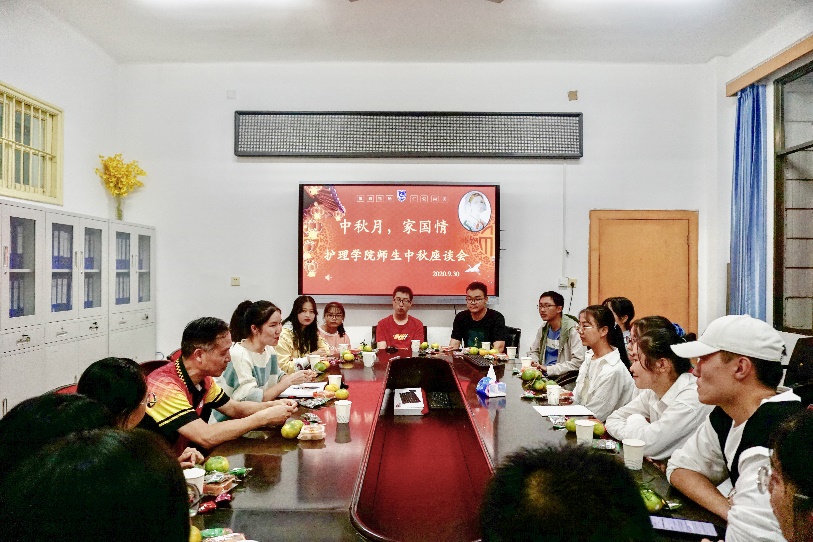 2020年9月30日晚,伟德国际victor1946党委副书记彭建南、团委书记夏代会在学院会议室主持召开师生中秋座谈会,对第一次离家度过国庆节和中秋节的2020级新生代表给予温暖与关怀。