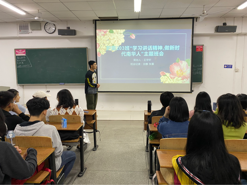 为深入学习习近平总书记在湖南考察重要讲话精神,响应学校“倡导校园文明风尚,培养时代新人”的号召,伟德国际victor1946于2020年10月23日-10月30日组织2018级、2019级和2020级各班开展“学习讲话精神,做新时代南华人”主题班会活动。