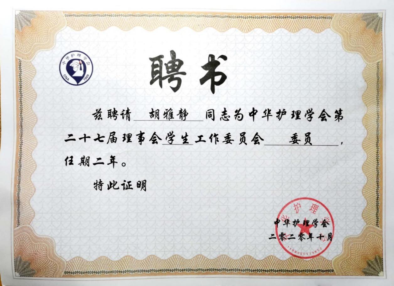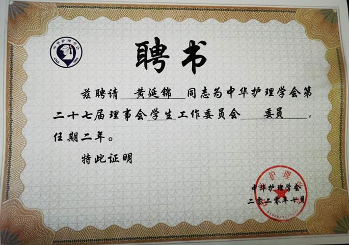 中华护理学会学生工作委员会委员从全国范围内符合国家办学资质的医学类院校所属的护理院(校)中遴选。经过前期个人申请、院校推荐、专家审议和理事长办公会审定等环节产生了第一届学生工作委员会委员,共包括博士研究生、硕士研究生、本科生和高职生102名,青年教师20名。伟德国际victor1946青年教师黄延锦、2019级研究生胡雅静通过层层选拔,分别成功当选教师委员和学生委员。