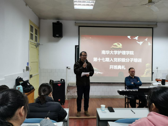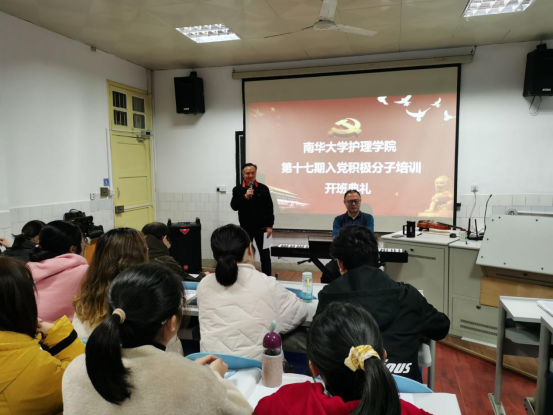 国歌响起,开班典礼正式拉开序幕。院党委书记陈晓坚在动员讲话中指出,开办入党积极分子培训班是培养广大入党积极分子特别是青年学生踊跃团结在党周围,使青年学生不断加强对党的认识,升华思想境界,坚定理想信念,从而在思想和行动上不断向党组织积极靠拢。他表示,我们党带领全国人民进入中国特色社会主义发展新阶段、新时代、新征程,呼吁青年一代要勇于担当,将火红的青春集合在火红的党旗下,认真学习,努力工作,为实现中华民族伟大复兴做出更大贡献。