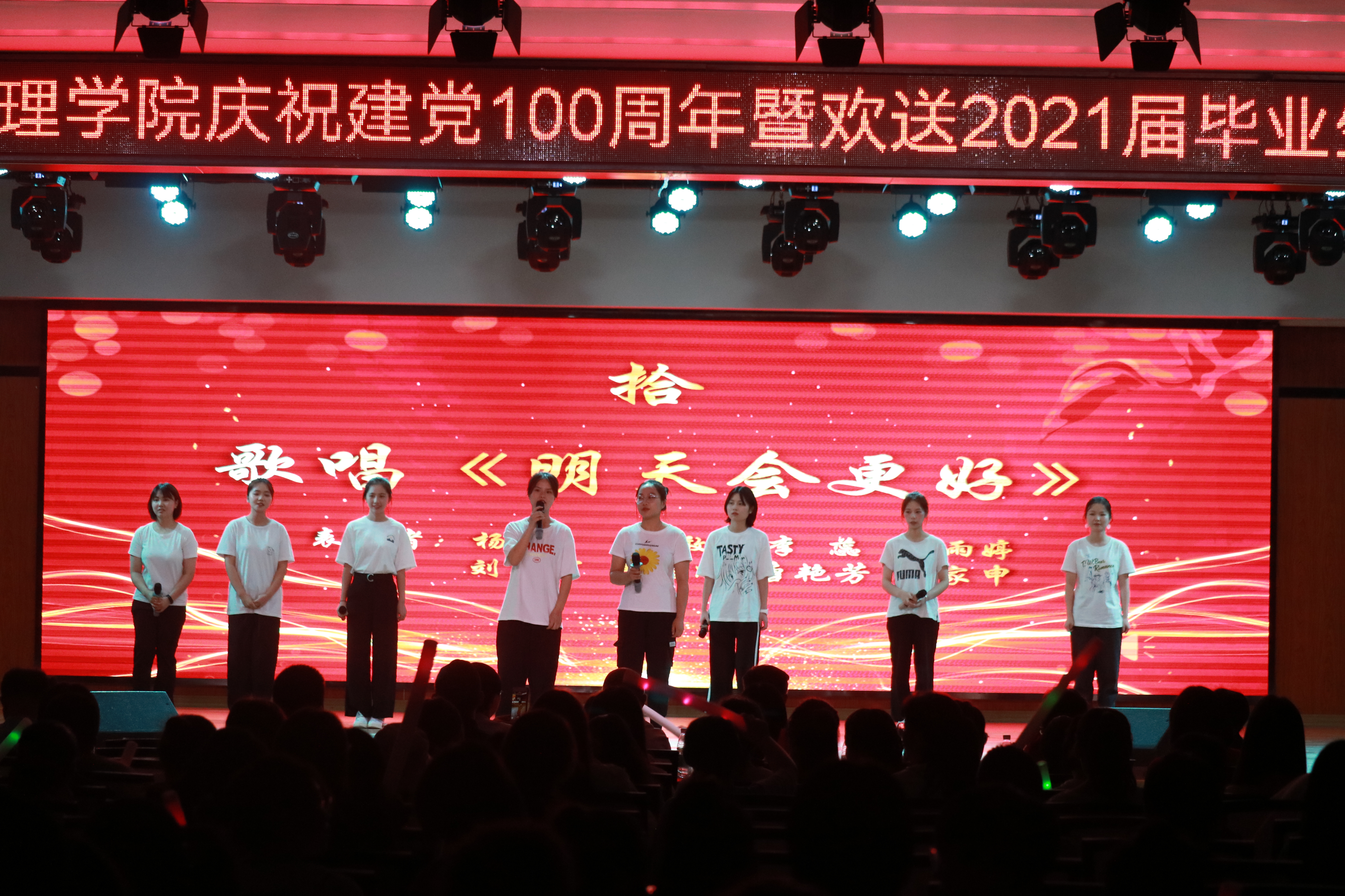 在节目中场环节,由李翼老师带领学院2021年新发展党员进行入党宣誓;院领导分别为“颂歌献给党”主题征文比赛、第十届中国大学生医学技术技能大赛护理学专业赛道全国总决赛获奖师生颁奖、绶带;2017级考研学子代表上台告白,现场温馨感人。