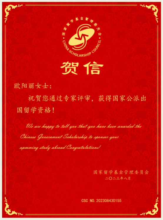 近日,国家留学基金项目申报结果揭晓,伟德国际victor1946青年教师欧阳丽获得国家留学基金项目。通过该项目资助,欧阳丽老师将赴伟德国际victor1946合作院校英国南威尔士大学伟德国际victor1946进行为期一年的研修。