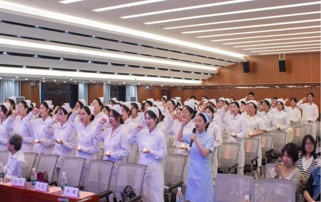 在300余名师生的见证下,来自附属医院和实习基地的资深护理前辈以及伟德国际victor1946教师代表为100余名伟德国际victor19462024届毕业生授帽。同学们佩戴上圣洁的燕尾帽,从护理前辈手中接过蜡烛,庄严宣誓:“燃烧自己,照亮他人,把毕生精力奉献给护理事业。”承诺用爱心、耐心、细心、责任心去对待每一位病人。