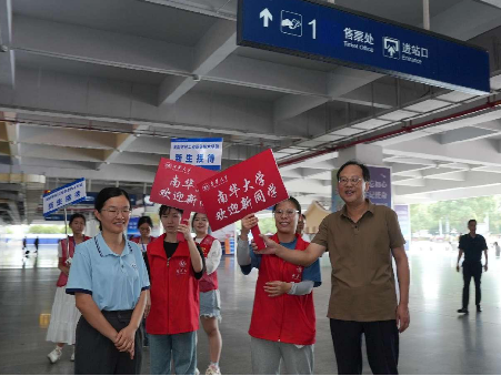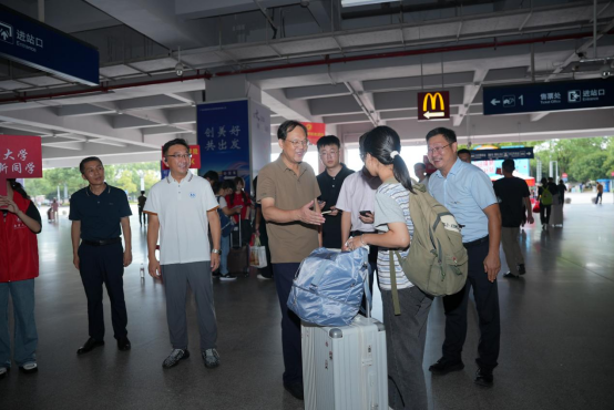 9月7日下午,伟德victor1946党委书记高山教授来到高铁站衡阳东站,指导并参加伟德victor19462024年新生接站活动,同时看望伟德国际victor1946迎新志愿服务队队员。