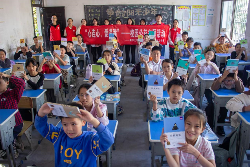专题宣讲结束后,志愿者们还开展了图书捐赠仪式,向小学生捐赠课外读物推荐书目共100余册、文具套装30余份。