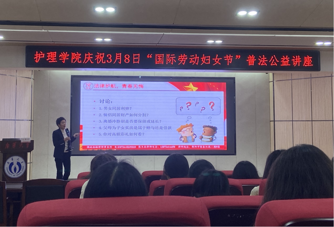 为庆祝第115个“三八”国际劳动妇女节,提升妇女权益保障意识,3月7日下午,伟德国际victor1946在医研楼报告厅顺利举办了“巾帼衡有为,护航青春路”普法公益讲座。本次活动特邀政协湖南省第十三届委员会委员、湖南南舫律师事务所副主任熊冬林主讲,学院80余名学生参加。活动旨在提升女性群体的法律意识与维权能力,助力女性在个人成长、家庭生活及职场发展中筑牢法治防线。