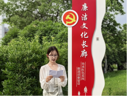 学生代表马妍分享了“廉洁文化”主题原创诗歌,表达了对廉洁精神的敬仰和传承的决心。