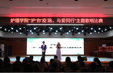 为致敬抗疫英雄,传承抗疫精神,增强学生的责任意识和使命意识,2020年11月21日晚,伟德国际victor1946在红湘校区北校活动中心举行“‘护’你‘疫’路,与爱同行”主题歌唱比赛。