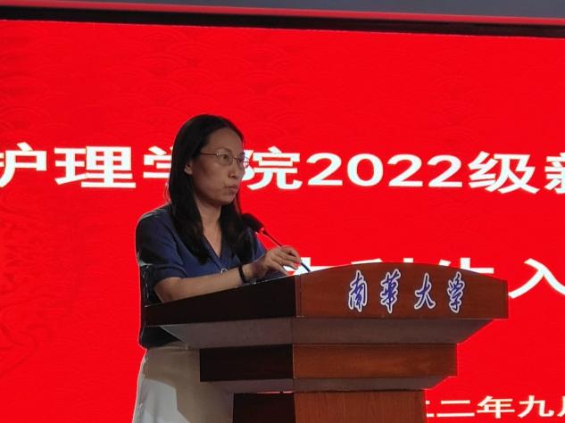 参加开学典礼的校友代表是附属第一医院护理部主任周艳辉博士。她鼓励全体同学要做一个大写的人,不仅要学好专业知识和通用知识,学会如何学习、如何做人,更要拥有家国情怀,用奋斗谱写青春华章;她希望同学们践行校训和院训,牢记初心,为护理学科及护理事业的发展不懈努力,书写不愧于国家、不愧于使命、不愧于自己、不愧于未来的亮丽诗篇。