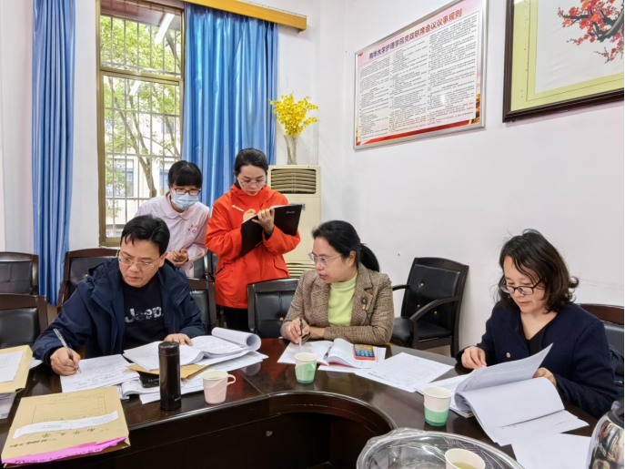 督导组组长赵飞骏教授进行检查任务分配,各位专家分别从学院教务运行管理、系室教学文件、课程设计与考核、毕业实习与实践基地建设、学生学业预警与帮扶等五个方面对伟德国际victor1946教学材料进行全面细致地检查。