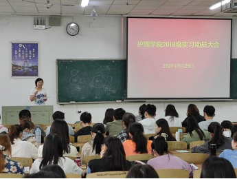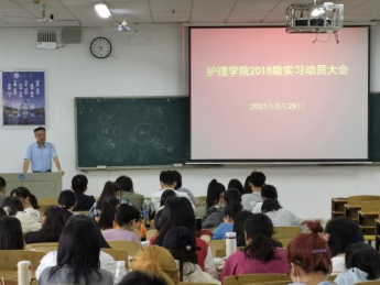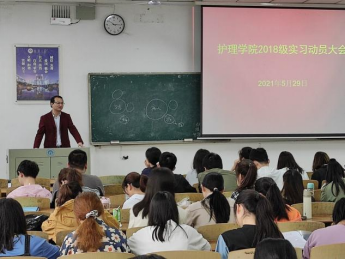 随后,彭建南副书记讲解实习注意事项。他从实习目的、意义、要求等方面展开指导,要求同学们用心对待实习,做到心到、眼到、身到、手到、口到,珍惜实习机会,谦虚谨慎、主动好学、积极进取,学到更多的临床技能;尊重带队老师,遵守实习医院规定,维护好南华护理学子形象;实习期间要有组织、有纪律,务必注意自身安全。