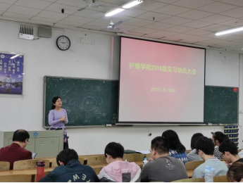 首先,何平平副院长进行实习动员与指导。她对实习安排、实习要求等进行了详细讲解,希望同学们摆正身份和姿态,尽快适应实习环境、完成角色转变。她特别强调,同学们在实习过程中要勤学习、勤记录、勤思考,积极与带教老师沟通,掌握实习技巧,学会心理调适;严格遵守医院的相关管理制度,按照疫情防控注意事项,做好自身健康防护;踏实完成各科室的实习任务,正确处理好实习、考研、就业的关系,做好规划。