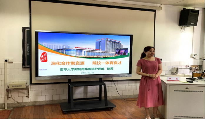 紧接着,伟德victor1946附属南华医院护理部主任陈莉以《深化合作聚资源院校一体育良才》为题,以院校合作的资源共享、创新同步、优势互补、互惠共赢、协同发展原则为切入点,围绕医院文化、服务理念、制度建设、教学体系、科研活动与成效、信息化建设等方面进行了介绍。