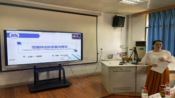 最后,北京协和医学院护理学博士冯婷婷为大家系统地介绍了《范围综述的实施与撰写》,从范围综述的概念、写作步骤、方法及技巧等方面与同学们进行了分享与交流。冯婷婷博士在讲授过程中娓娓道来,逻辑清晰,观点明确,用形象生动的语言,以其渊博的知识为同学们带来了关于范围综述精彩纷呈的学术讲座。