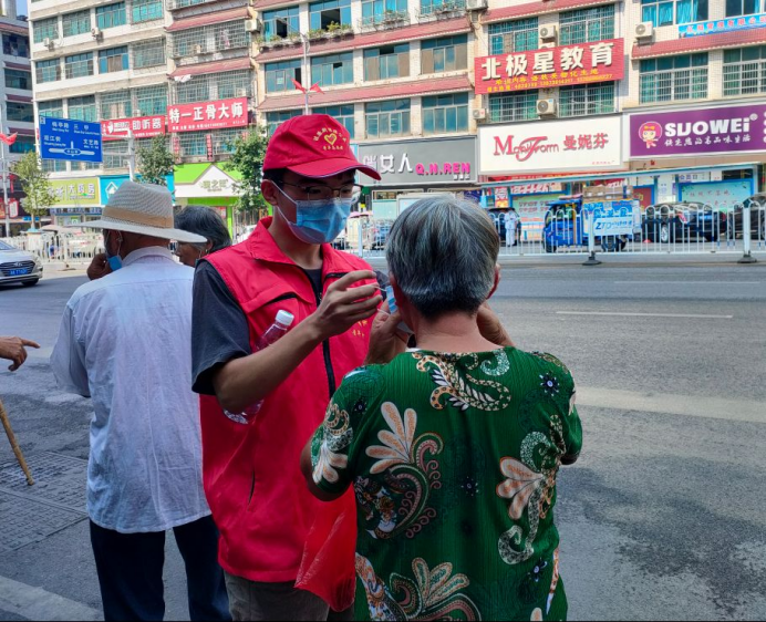 除在社区基层进行防疫行动外,也有同学参与到各个公共场所的防疫行动中。自8月2日以来,197班谭郁夫参加了当地交通运输局举办的新冠疫情防控宣传教育志愿服务活动。在活动中,他作为小队队长带领志愿者队伍分别在市人民医院、火车站附近的公交车站台进行防疫宣传劝导,以及在公交车上值守劝导。他还参加了当地组织的“呵护健康,传递文明”疫情防控的志愿服务活动,同样作为小队队长带领大学生志愿者队伍奔赴涟源市汽车站、人民公园、主要商业广场等人流密集区域进行疫情防控宣传劝导、酒精喷雾消毒和发放物资。同时,他积极参与线上疫情防控宣传工作,拍摄防疫知识短视频,宣传疫情防控防护知识。此外,他还积极发挥个人力量,在力所能及的范围内自行采购了物资,为烈日下的执勤人员发放防暑用品。