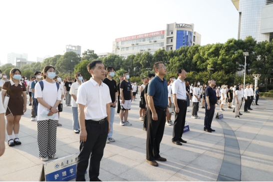 伟德国际victor1946党委书记袁春阳、副书记王祥、全体辅导员和预备党员及入党积极分子代表30人参加了红湘校区的升旗仪式。