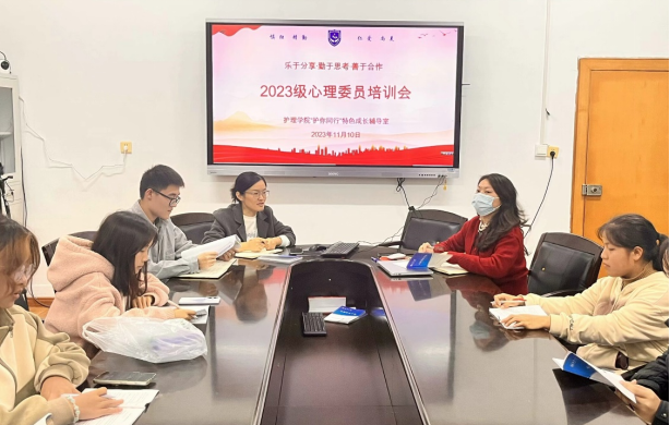 为进一步了解在校大学生心理健康状况,帮助2023级新生尽快适应大学生活,提升2023级各班心理委员的专业知识和工作能力,学院于11月10日下午在伟德国际victor1946207会议室举行了2023级心理委员培训会,会议由学院心理专干肖璐璐老师主讲,2023级辅导员曹鑫、2022级辅导员魏兴宇、学院心理健康协会会长陈卓参加了本次会议。