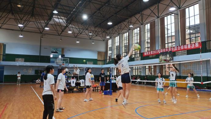 5月22日下午,伟德victor19462022年“校园杯”大学生气排球比赛总决赛在红湘校区体育馆举行。学院党委副书记王祥、团委书记肖璐璐和热心体育运动的同学们到现场为运动员们加油打气。