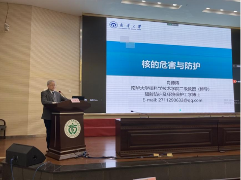 南华医院外科教研室主任兼核应急办主任卢先州以“中国的核应急现状”为题,向大家讲述核能发展与核应急基本形式、核应急方针政策、核应急能力的建设与保持。紧接着,他以自己的亲身经历向大家介绍南华医院建院以来在核应急医疗救治方面所作出的努力以及核应急科技创新,让大家对核事故应急处置有了初步的了解。