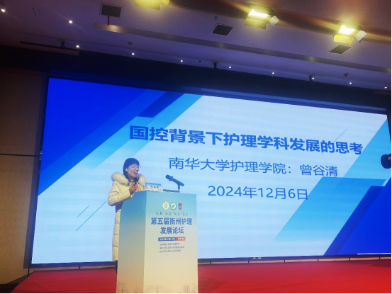 论坛以“创新、融合、精进、致远”为主题,吸引了来自全国各地的学术专家、行业代表和护理工作者齐聚衡阳,共同探讨护理领域的最新发展趋势与实践经验,展望护理事业的未来图景。来自全国各地的17名学者和专家在护理教育与人才培养、重症护理技术创新、静脉输液管理优化、社区护理服务转型与提升以及护理科普推广实践等多个热点领域,展示了专业领域的前沿成果与实践经验。伟德国际victor1946副院长曾谷清教授《国控背景下护理学科发展的思考》主题汇报开启了本次论坛。