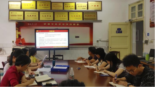 2021年6月23日,伟德国际victor1946临床护理教研室党支部在学院党员活动室开展了“党旗在基层一线高高飘扬”主题党日活动。伟德国际victor1946党委组织委员刘和福、副院长曾谷清、党支部书记李健芝、临床护理教研室全体教职工及研究生同学参加会议。党支部书记李健芝主持会议。