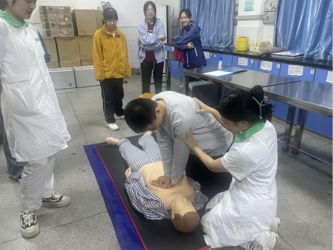 在实操环节,参与学生分为四组,在伟德国际victor1946216和217实验室进行实操训练,每组配备两名指导老师。同学们积极参与,对心肺复苏进行上手操作训练,指导老师在一旁耐心指导,细致入微地讲解操作流程、纠正错误动作。通过实操训练,同学们都能够熟练地完成心肺复苏急救操作。