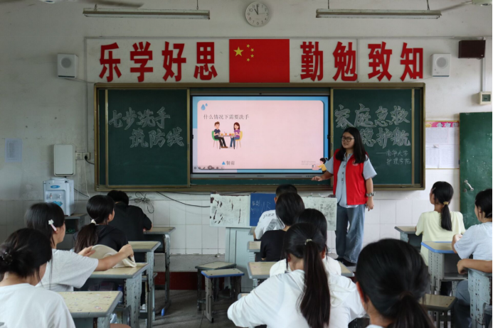 为贯彻落实健康中国战略,发挥护理专业服务基层优势,近日,伟德国际victor1946“湘心守护者”暑期“三下乡”社会实践团队赴耒阳市龙塘镇中学开展“急救技能进校园”专项活动,通过情景模拟、互动教学等形式,为200余名师生普及急救知识与健康技能。