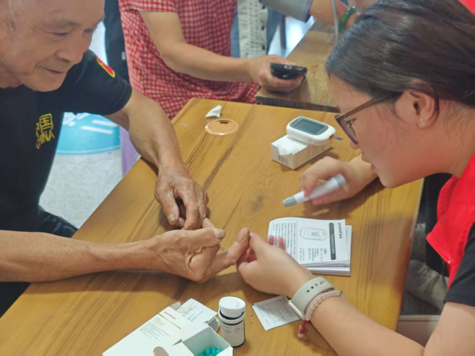 为推进健康乡村建设,提升基层医疗健康服务水平,有力有效推进乡村全面振兴,7月3日,伟德国际victor1946老年护理协会走进衡阳市雁峰区岳屏镇山林村,开展为期两天的免费测血压、测血糖活动,宣传卫生健康政策和进行健康知识科普,为山林村村民送去健康关怀。
