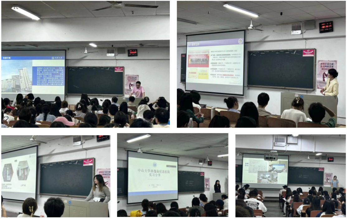 分享会采用线上线下相结合的方式开展,分为经验分享和互动答疑两个环节。来自中山大学孙逸仙纪念医院、广州医科大学附属第二医院、深圳市龙华区人民医院等实习医院的8名实习队长进行了实习就业经验分享。