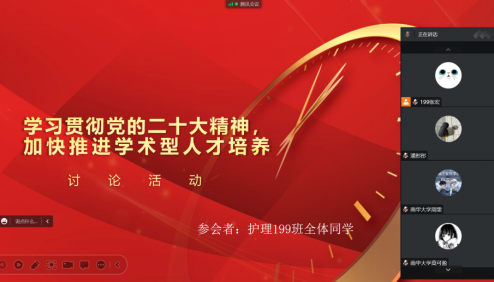 此次小组讨论活动系统全面、内容丰富,具有很强的现实针对性,为同学们更加全面、精准地学习贯彻党的二十大精神、推进护理专业型人才培养提供了有力的指导。